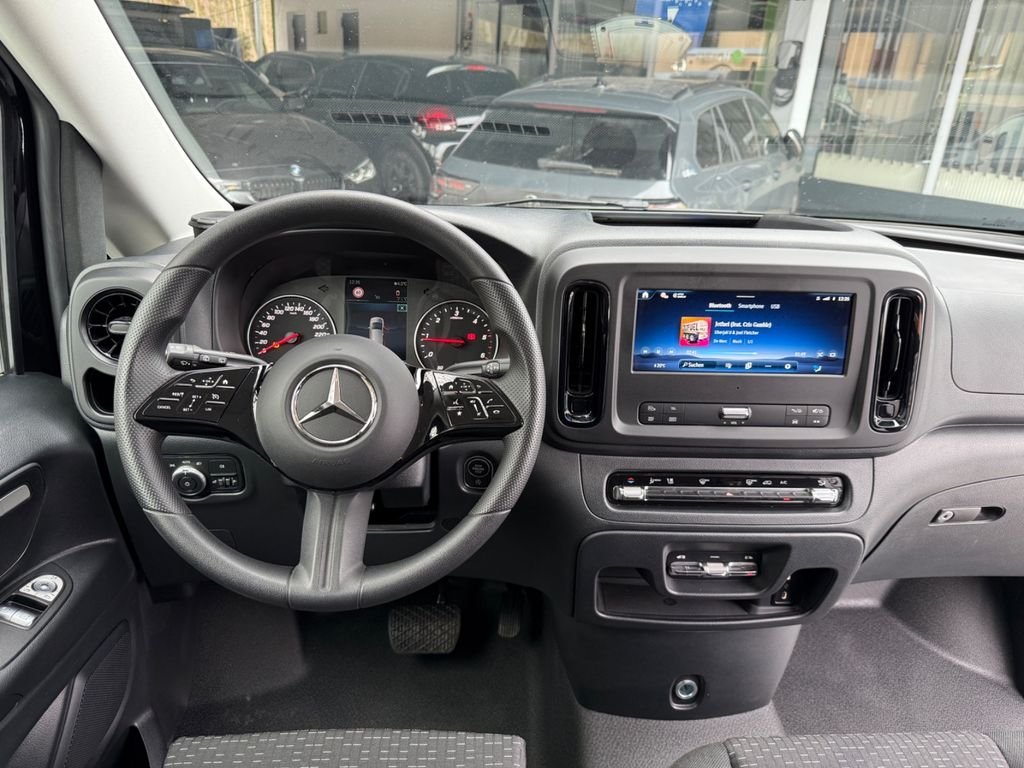 Armlehnen Fahrgastraum, , Easy-Pack-Paket, , Fahrassistenz-System: Verkehrs-Informations-System Live Traffic,, Fahrassistenz-System: Verkehrszeichenerkennung, , Komfort-Fahrwerk, , Komfortbeleuchtung im Fahrgast-/Laderaum, , Metallic-Lackierung, , Navigationssystem für Multimediasystem MBUX, , Park-Paket mit Rückfahrkamera, , Raucher-Paket, , Schiebetür Lade-/Fahrgastraum links elektrisch,, Sitzausstattung: Schnellverriegelung für Sitzschienen-System (3 Schienen), , Sitze im Fahrerhaus: Beifahrersitz als Zweiersitz, , Sitze im Lade-/FG-Raum: 1.Reihe, 3er-Sitzbank Komfort, , Sitze im Lade-/FG-Raum: 2.Reihe, 3er-Sitzbank Komfort, , Smartphone-Integration (Apple CarPlay und Android Auto), , Spiegel-Paket, , Verglasung hinten abgedunkelt / Schwarzglas, , Vorderachse verstärkt, , Winter-Paket, Zul. , Gesamtgewicht 3,20 t, , 3. Bremsleuchte, , Adaptives Bremslicht, , Airbag Beifahrerseite, Airbag Fahrerseite, , Anfahrhilfe (Berganfahr-Assistent), , Außenspiegel elektr. verstell